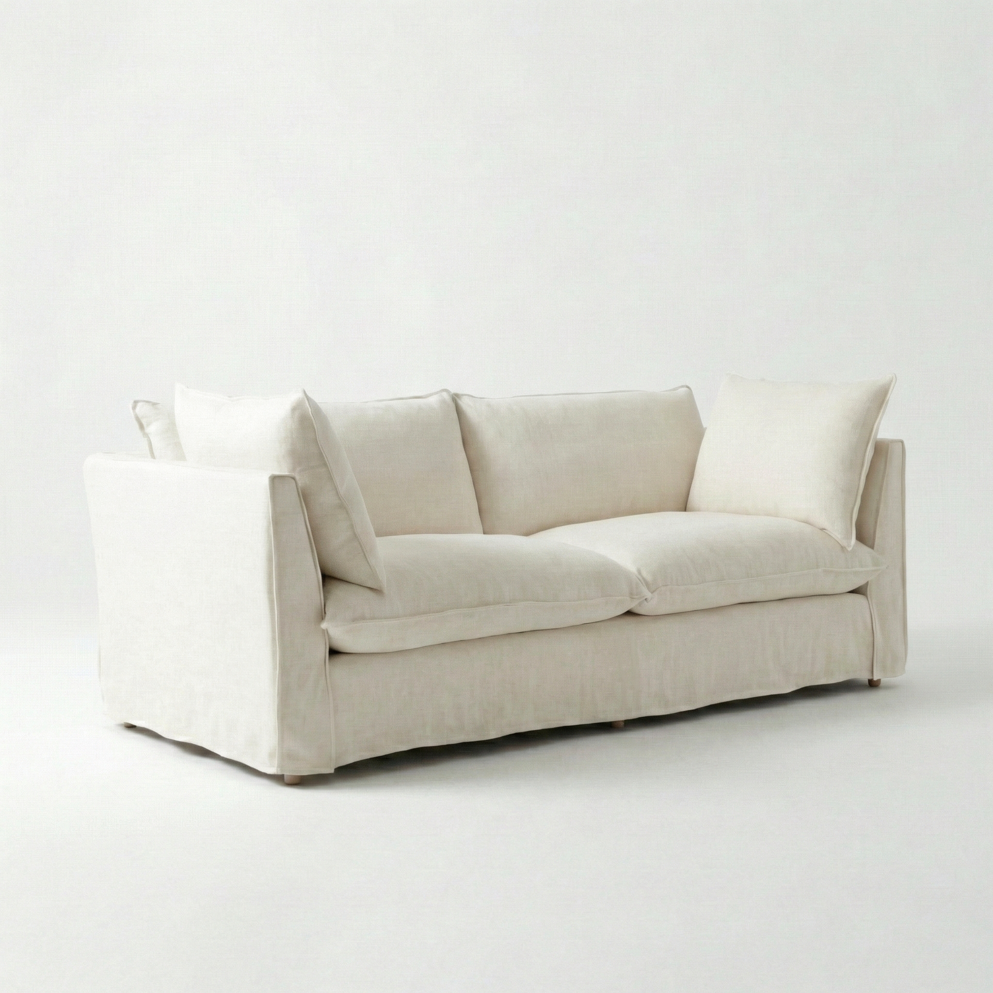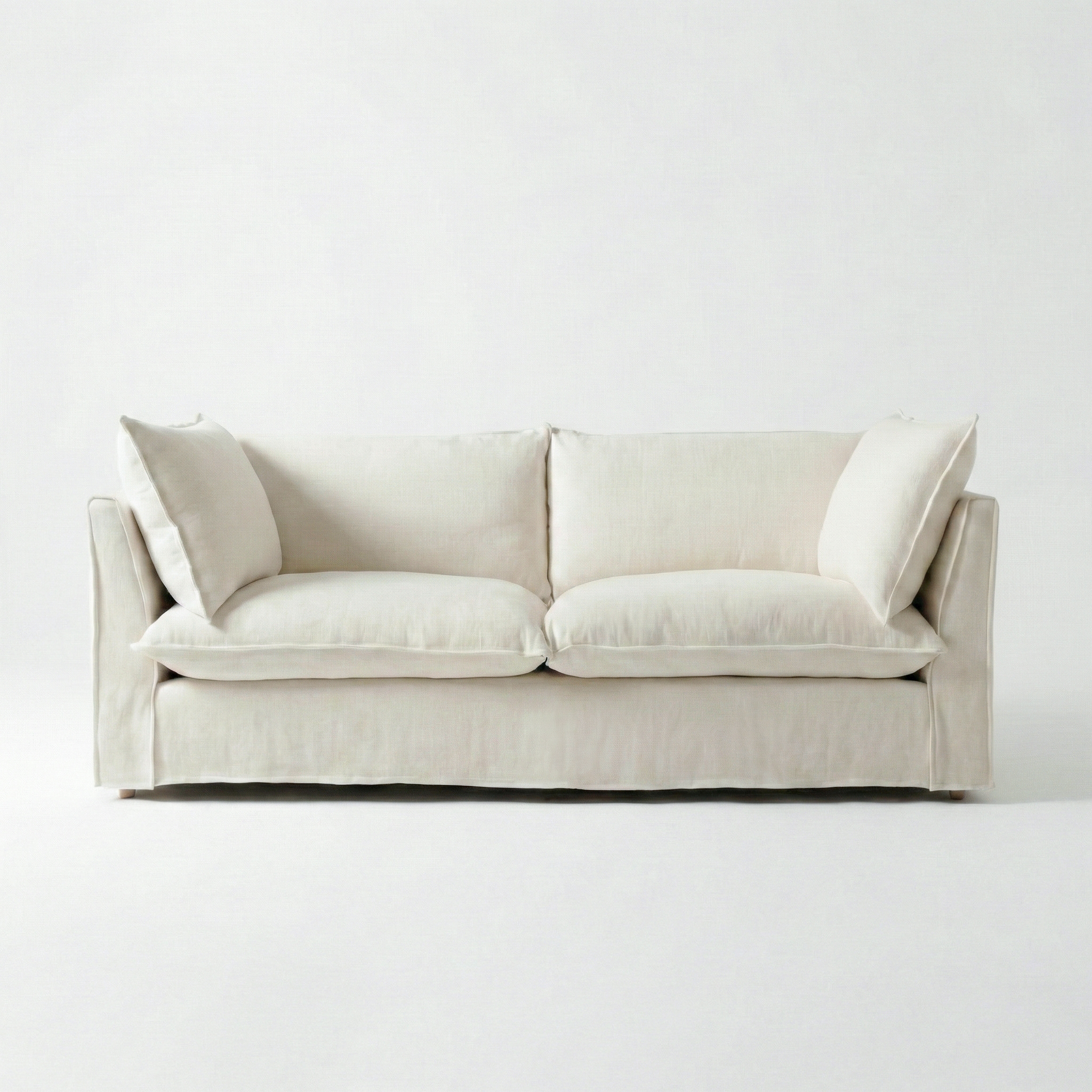 Coco 3 seater sofa with Self Piped Knife Edge cushion in Cotton Linen Cool Coconut - Hand Made in USA