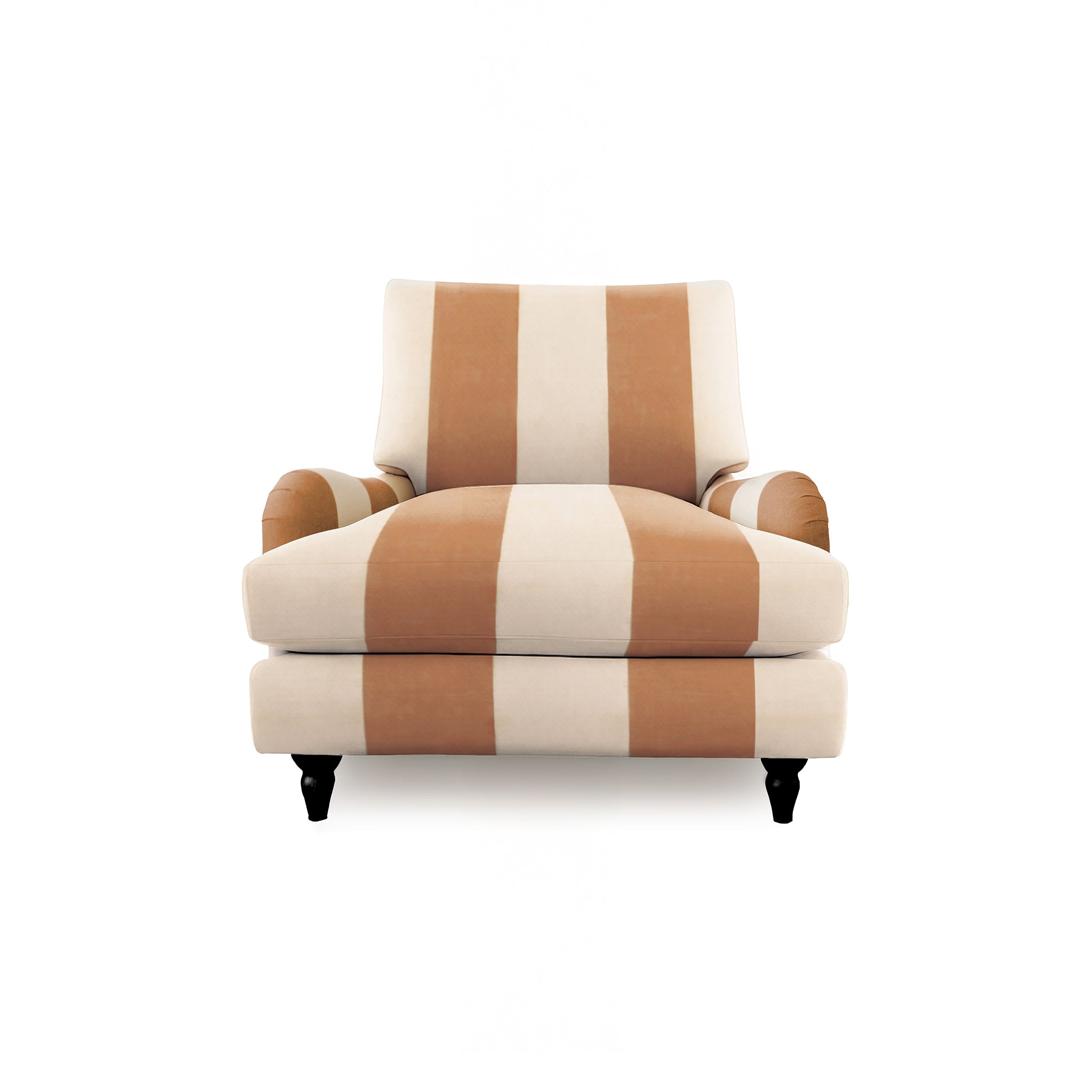 Isobel Armchair with Big Back Cushion in Caramel Stripe - Hand Made in USA