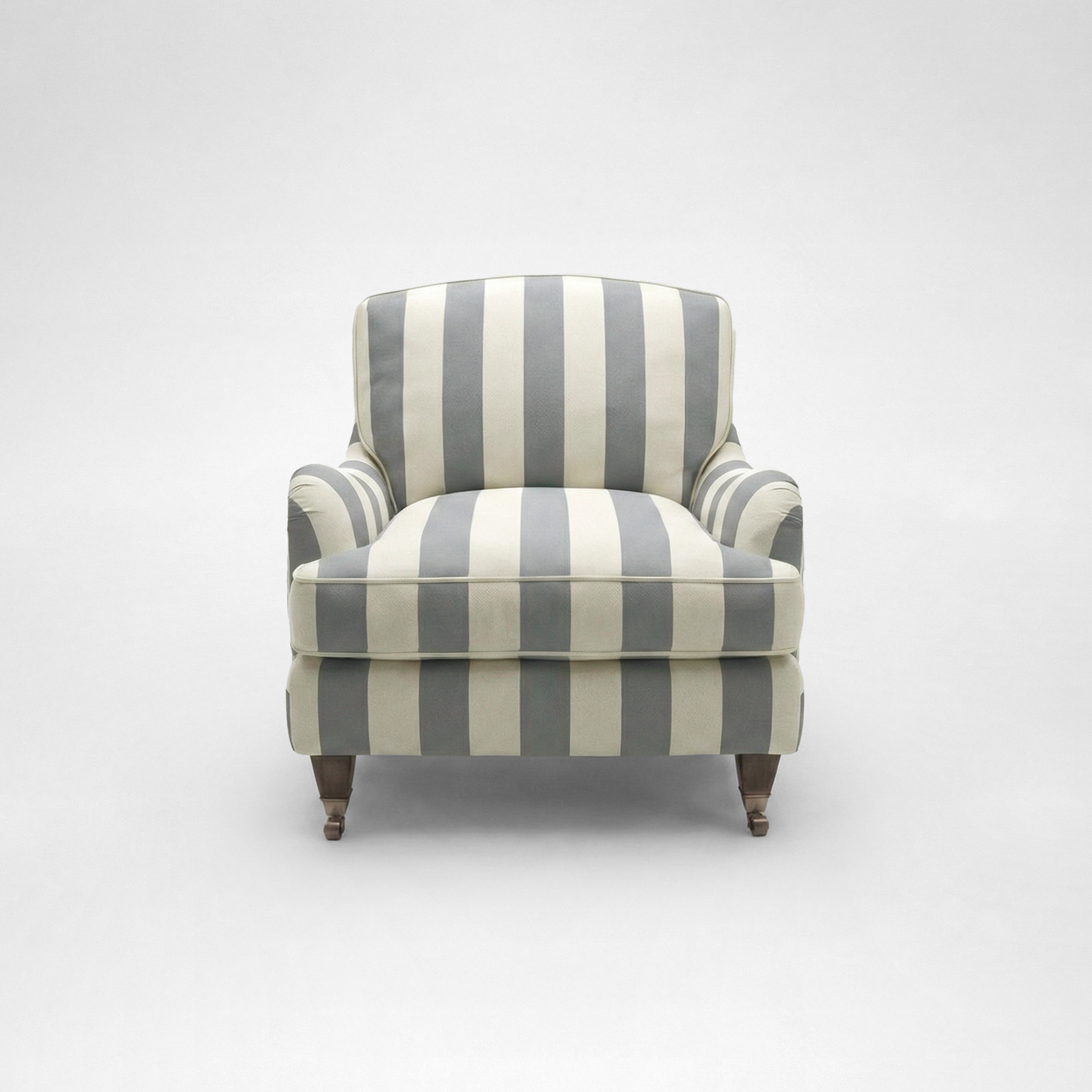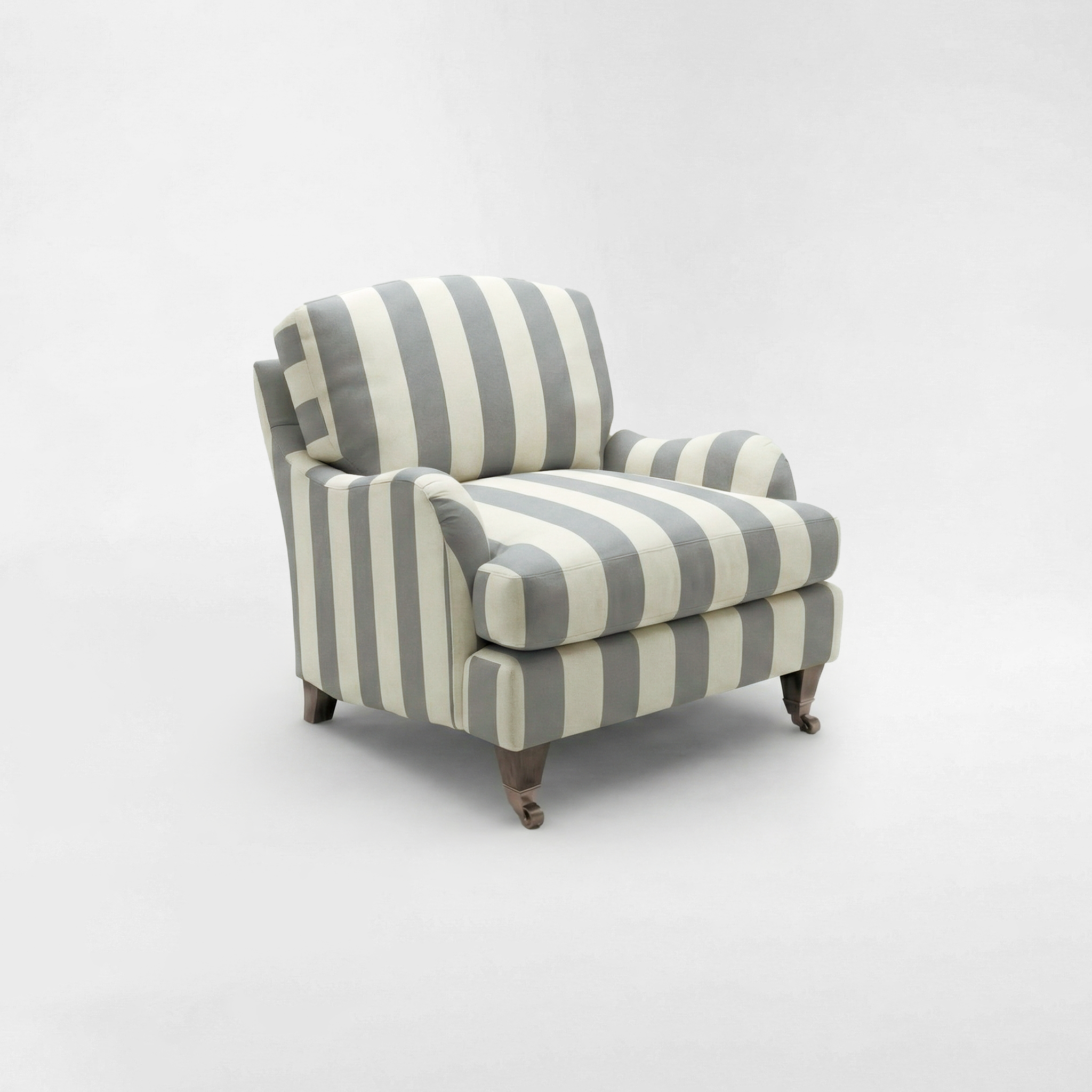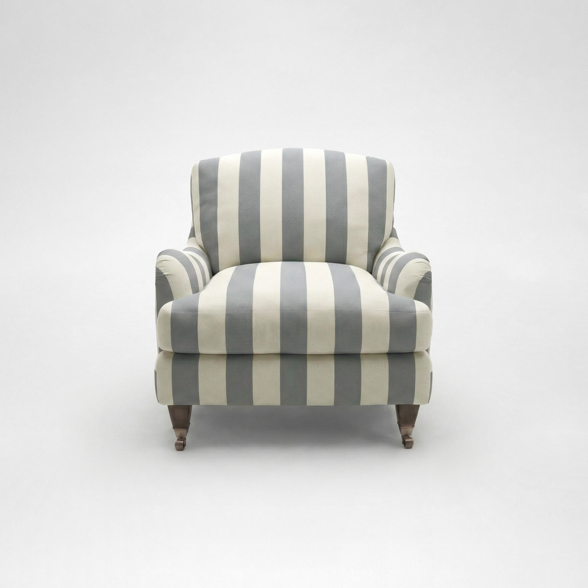 Isobel Armchair with Big Back Cushion in Garden Grey Stripe - Hand Made in USA