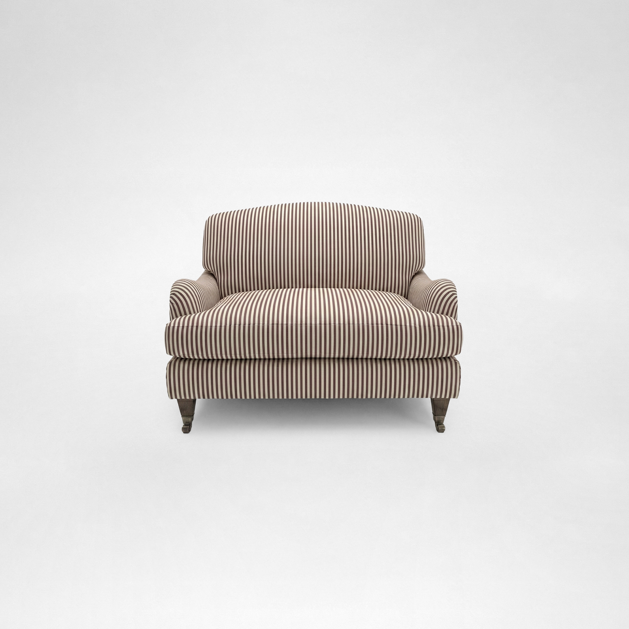 Isobel Loveseat with Big Back Cushion in Narrow Chocolate Stripe - Hand Made in USA