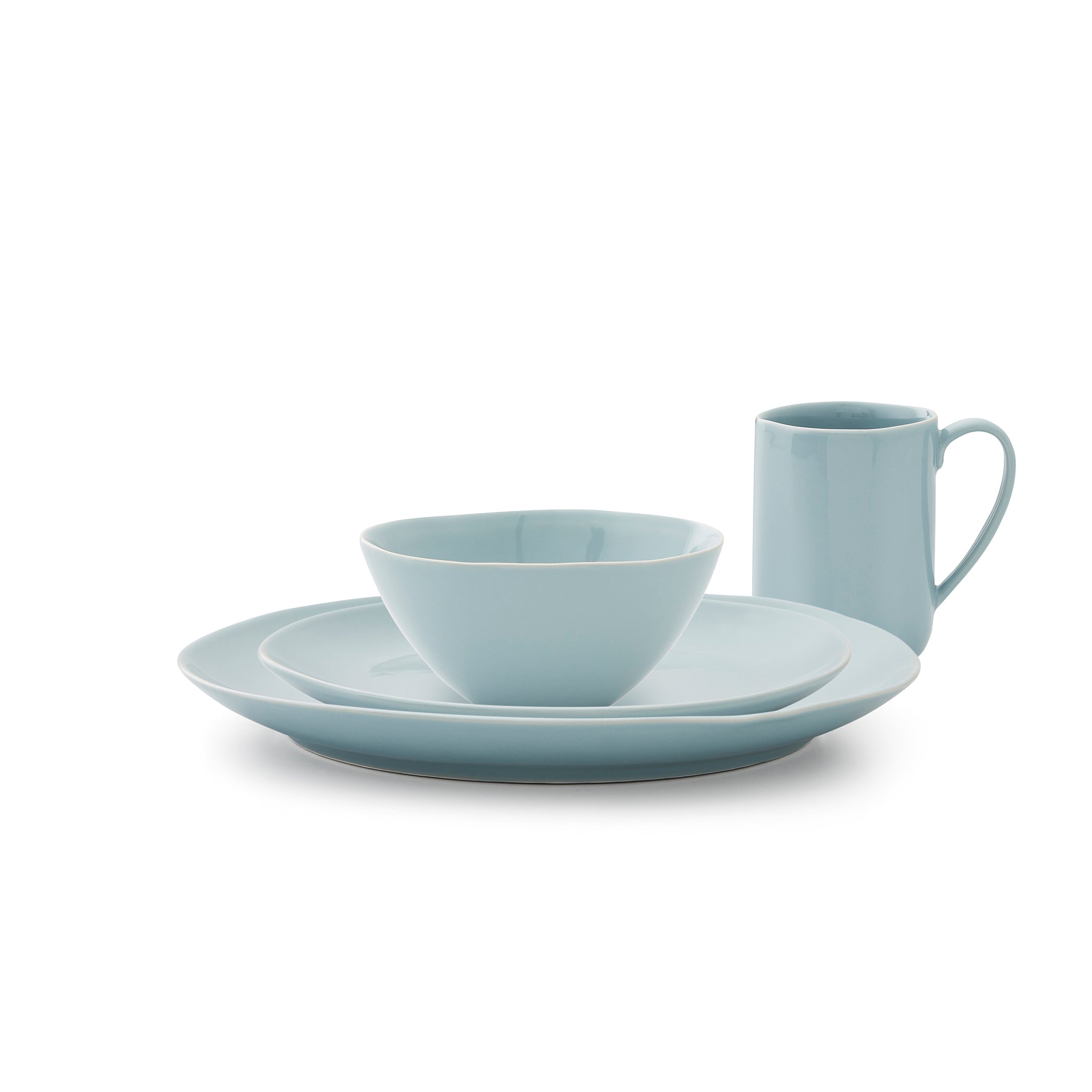 Elevate your dinnerware with our naturally beautiful Sophie Conran for Portmeirion Robin's Egg Arbor 4-Piece Place Setting featuring one of each dinner plate, salad plate, all purpose bowl and mug, Inspired by Sophie’s innate love of nature, this contemporary set boasts a striking, organic shape - reminiscent of natural wood grain with subtle asymmetrical edges. Made from durable stoneware, each piece is dishwasher, microwave and freezer safe – making the set perfect for everyday use for you and your family.