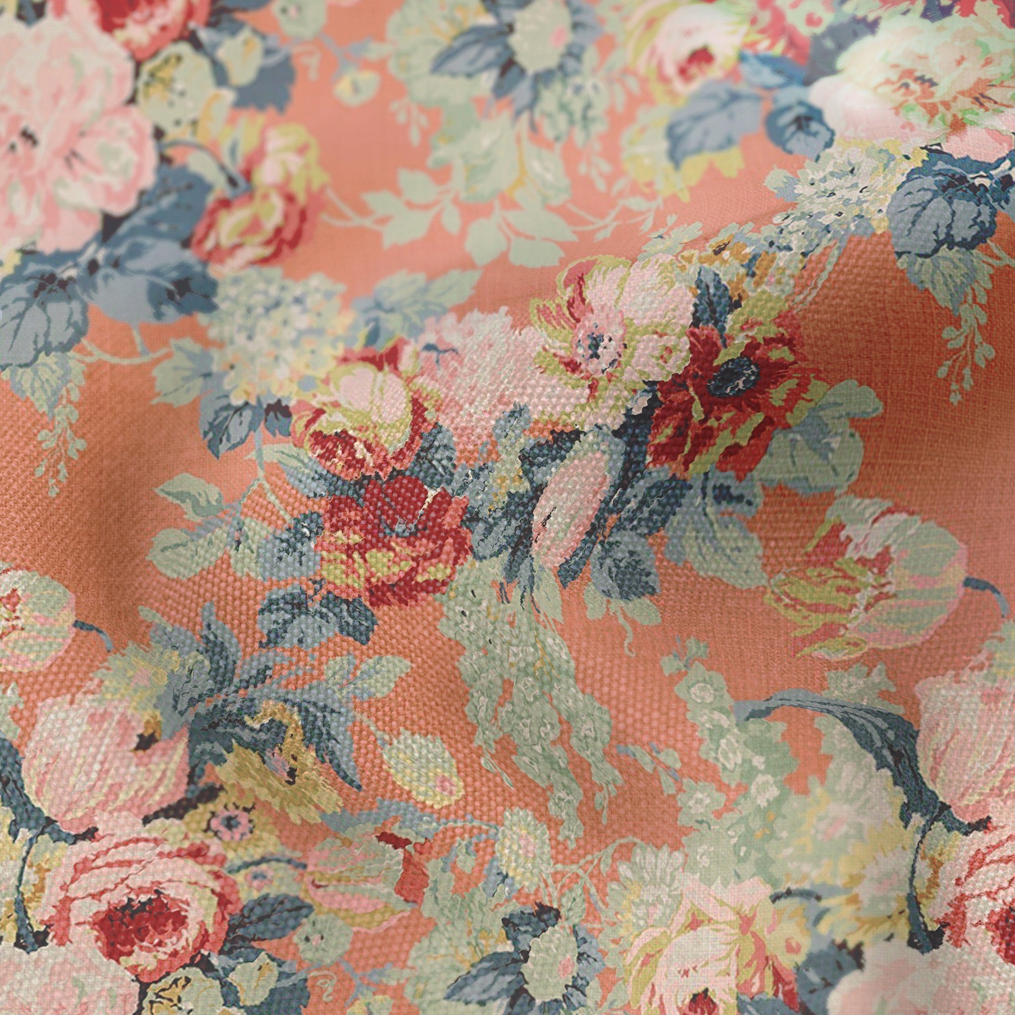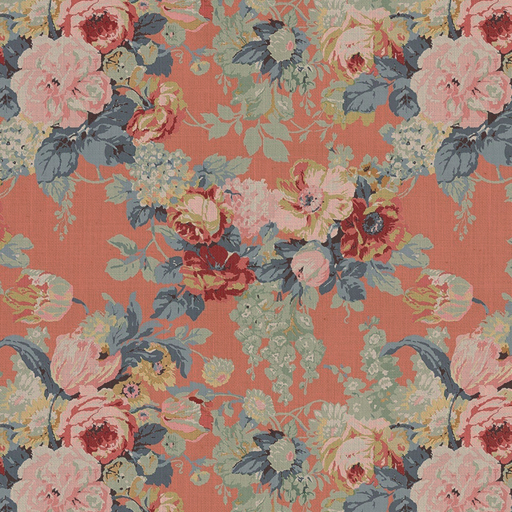 This beautiful design is from Sophie’s English Garden range in our Coral Orange colourway. The gorgeous bouquets of roses and cottage garden flowers are reminiscent of long summer days in an idyllic garden and have a very warm and comfy feeling with this cosy coral background.