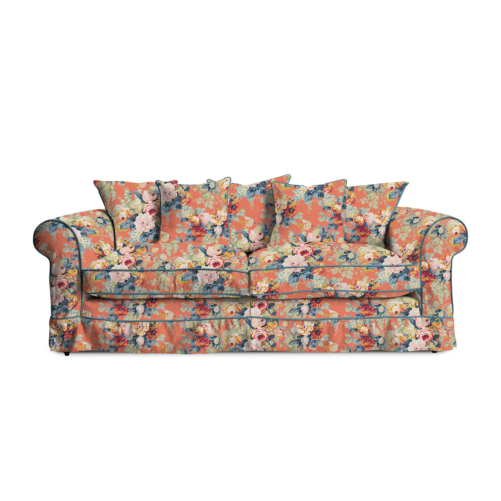 Salthrop Large Sofa with Scatter Cushion in Coral Orange with Lagoon Velvet Trim - Hand Made in USA