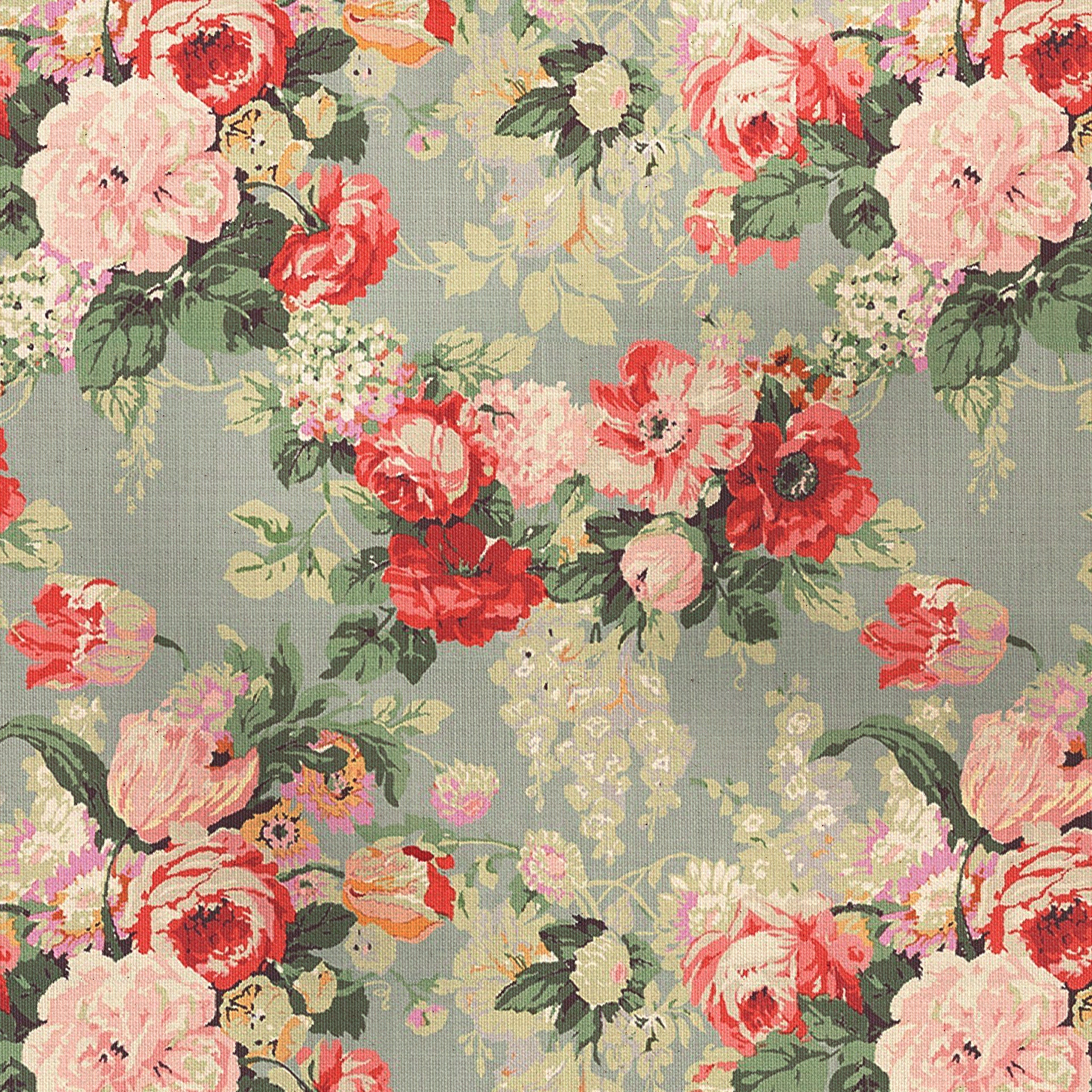 This beautiful design is from Sophie’s English Garden range in our Grey Skies colourway. The gorgeous bouquets of roses and cottage garden flowers are reminiscent of long summer days in an idyllic garden and have a very warm and welcoming feeling with this soft and gentle grey-green background.