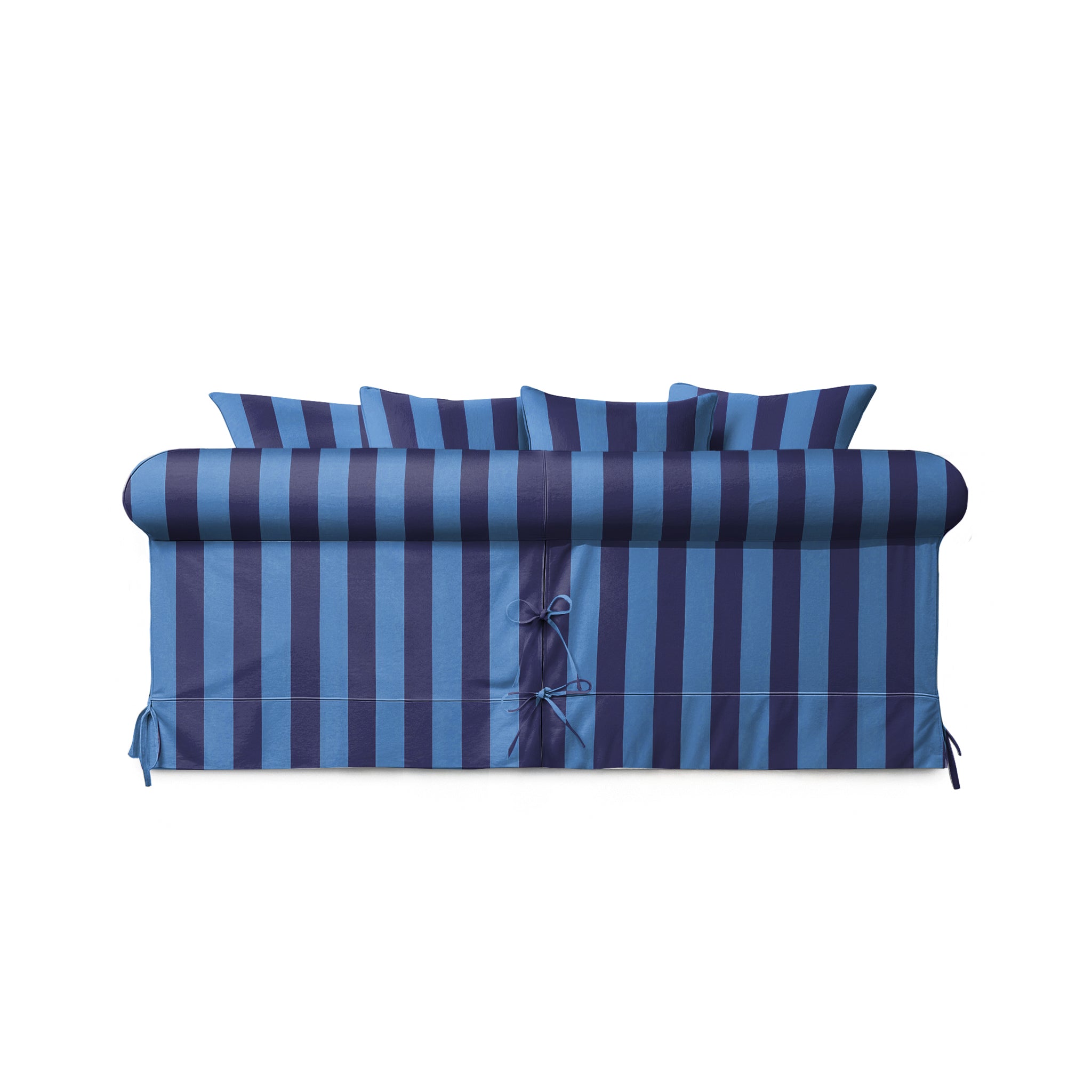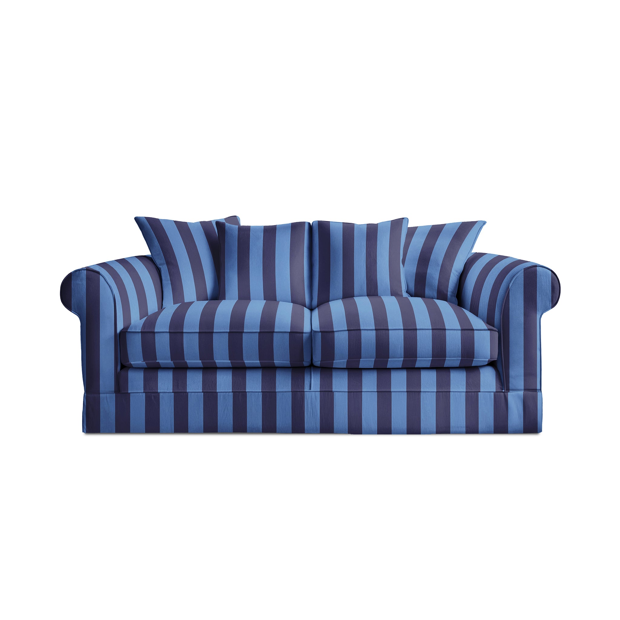 Salthrop Medium Sofa with Scatter Cushion in Coastal Blue Stripe - Hand Made in USA