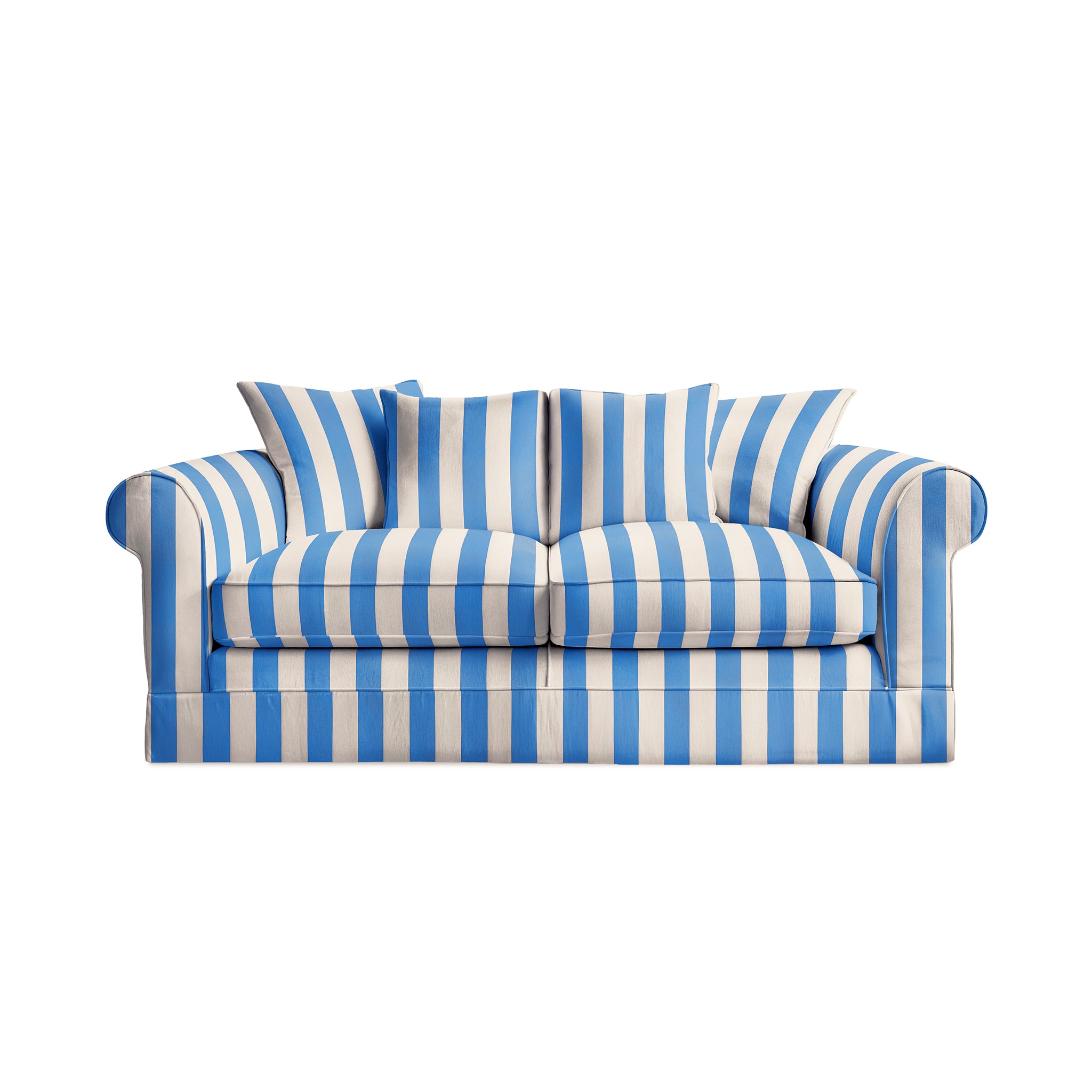 Salthrop Medium Sofa with Scatter Cushion in Cornish Blue Stripe - Hand Made in USA