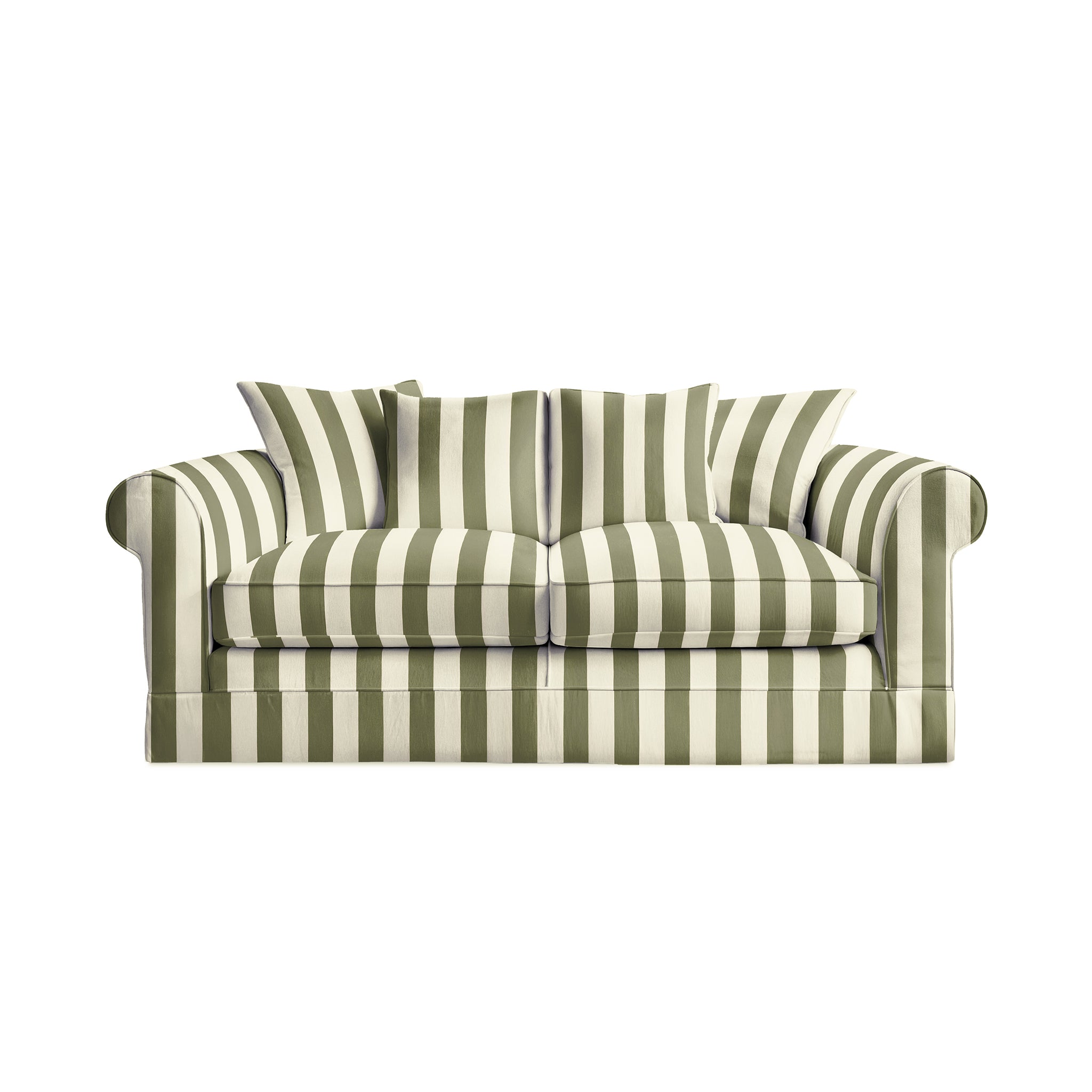 Salthrop Medium Sofa with Scatter Cushion in Spring Green Stripe - Hand Made in USA