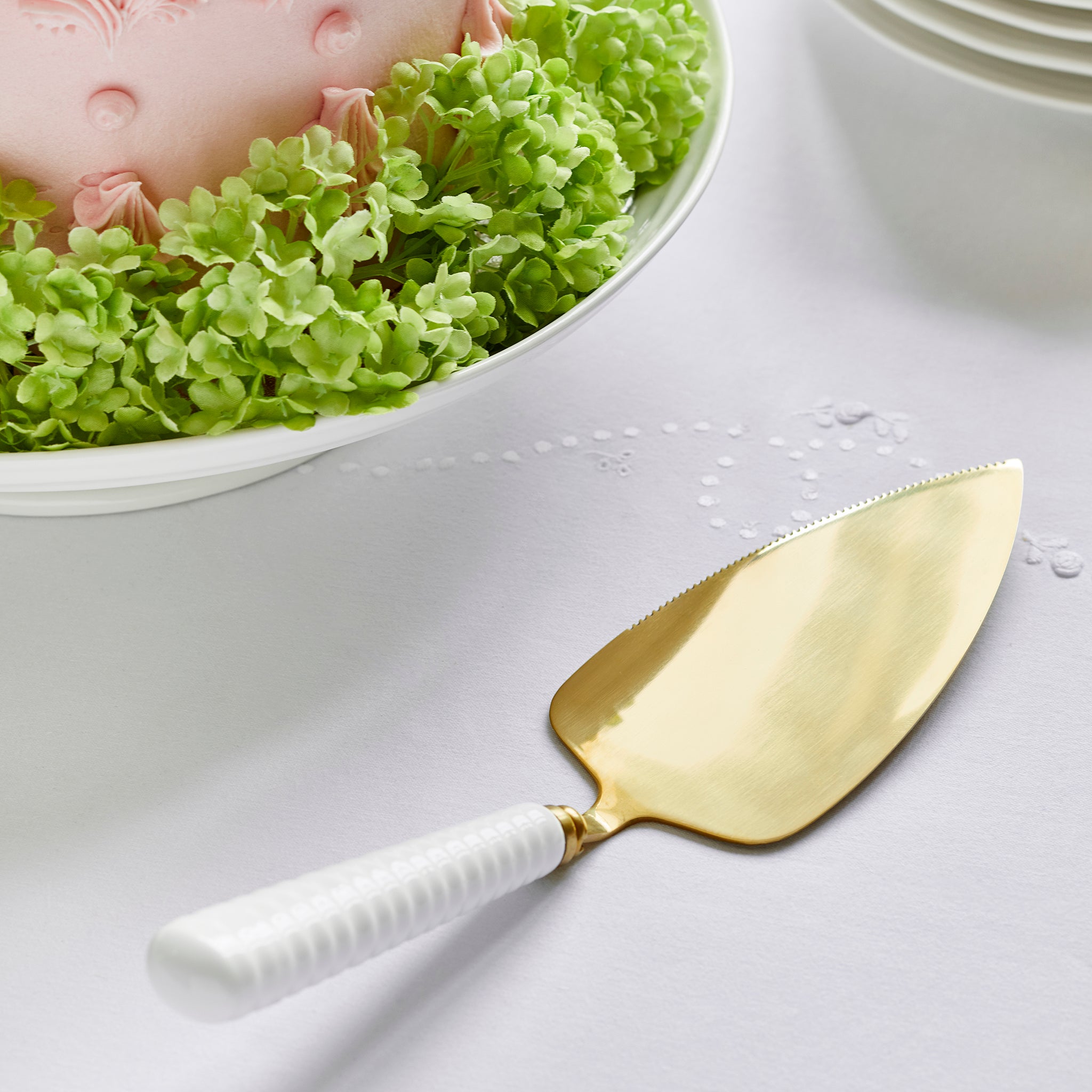 Serve up some scrumptious slices of cake with this Sophie Conran for Portmeirion Cake Server. This cake server is a must-have addition to any cake lover’s kitchen, featuring a beautiful white porcelain handle in Sophie Conran’s distinctive ripple style and a silver metal plate to serve. Perfect for serving up after-dinner dessert, whether a weekday treat or special occasion. Beautifully gift boxed, this cake server makes a wonderful gift for new homeowners or budding star bakers.