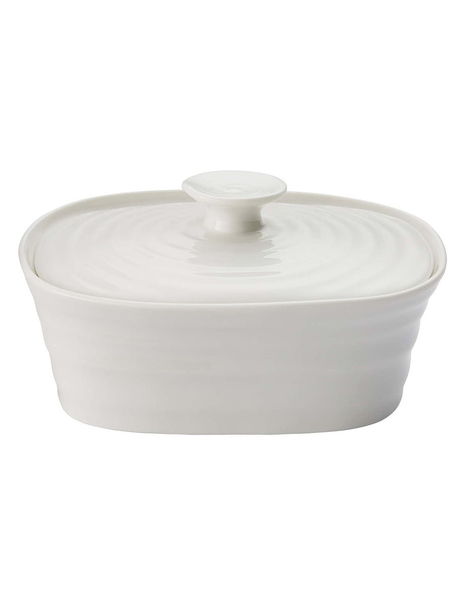 The beautifully rippled design of Sophie's White Porcelain Covered Butter Dish is wonderfully tactile with an organic, hand made feel. The signature lines of this piece will add interest to any table and is delightfully versatile. The covered butter dish is the perfect companion throughout the day, from buttering your morning toast to cooking your evening meal.