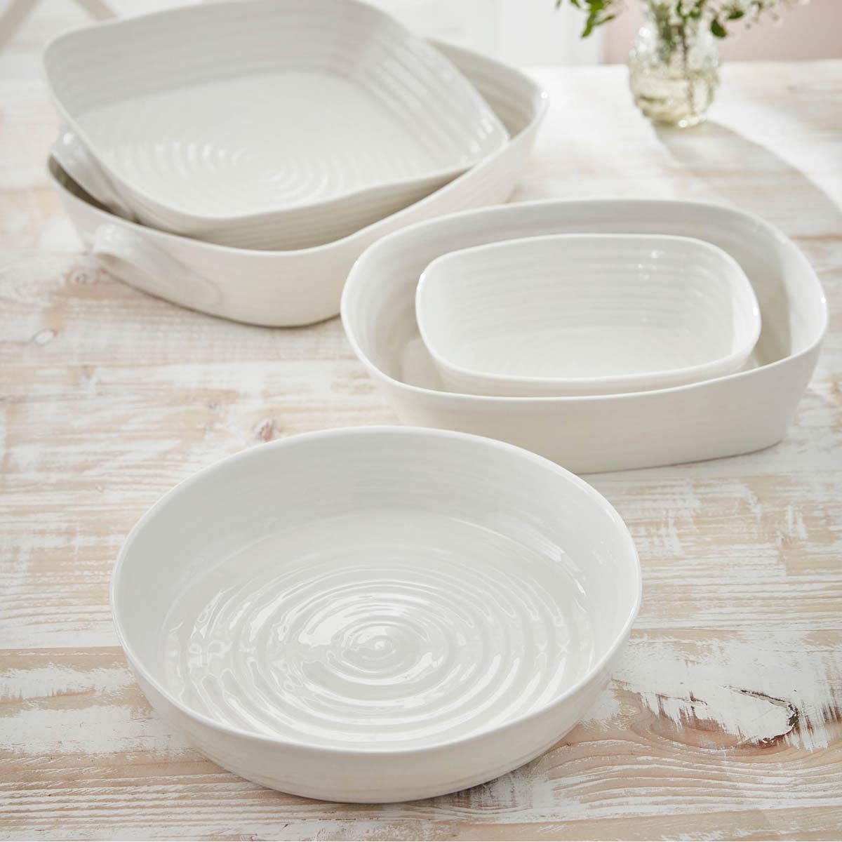 Whether it's your signature Sunday dish or veggies as a side, all roasts deserve to be properly displayed. The Sophie Conran 28cm round roasting dish in brilliant white makes the perfect addition to a brimming dining table, with its tactile ripples giving it a hand-thrown look. Not only is it great for serving succulent meat or a steaming tray of crispy potatoes, it's oven and microwave-safe too, so you can cook and reheat with confidence.